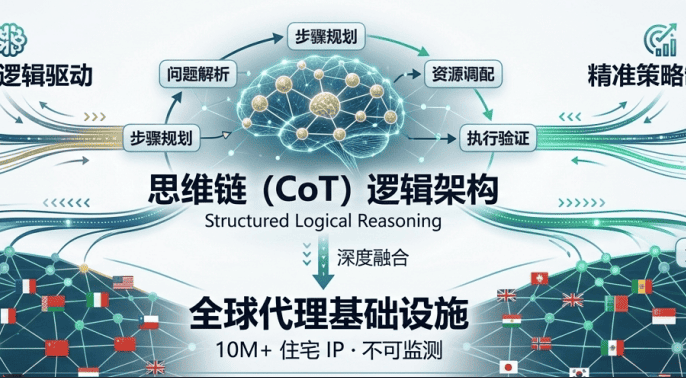 **CoT(思维链)**的核心价值在于将复杂任务拆解为可验证的逻辑步骤。当这种逻辑应用于 InstaIP 住宅代理 架构时,它强制执行一条完全不同的执行路径,即“基础设施推理”: